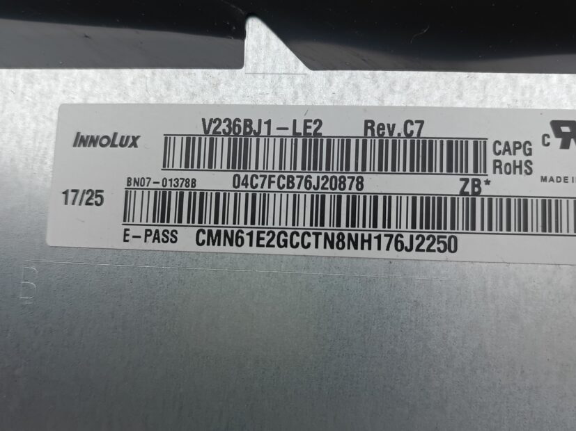 - Panel/Display: V236BJ1-LE2 rev. c7